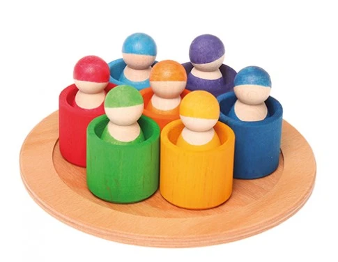 Who doesn’t love playing with colour? These 7 friends are in all colours of the rainbow and is the perfect start to playing and sorting colours. I adore the open endedness of this particular Grimms set as it can start off as a sorting set and then later on added to doll/gnome play or using the cups for playing shops, block building, stacking, as a weekly calendar for each day of the week, math games and so much more. Toys that have longevity and move through the many phases of childhood play are always a wonderful investment.