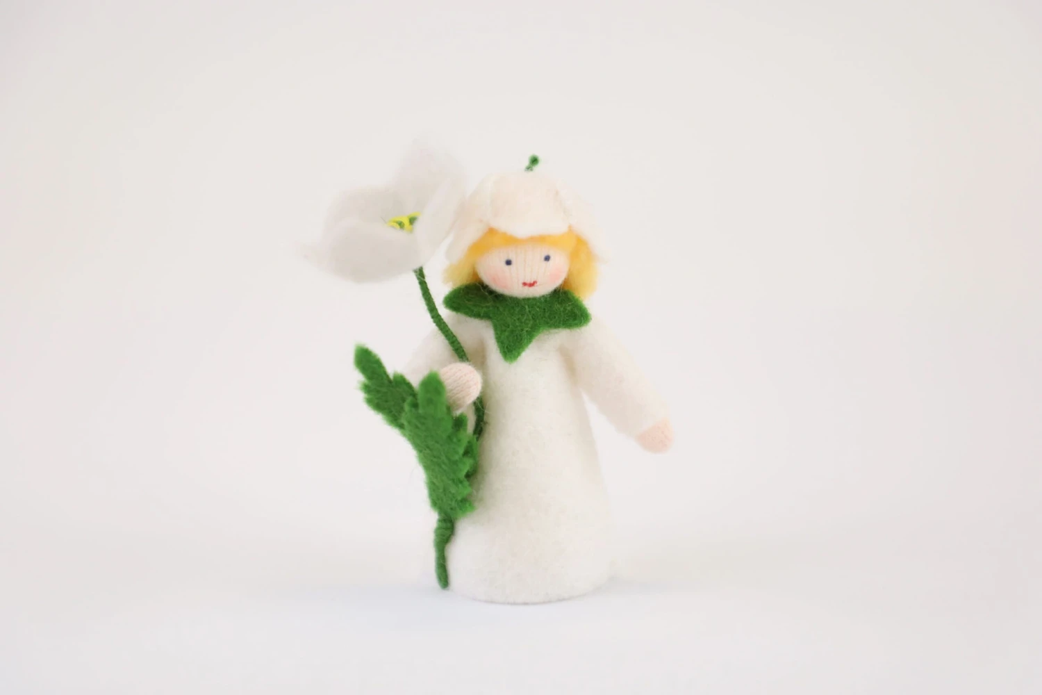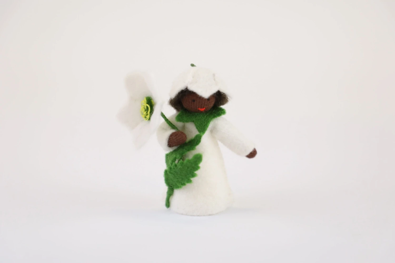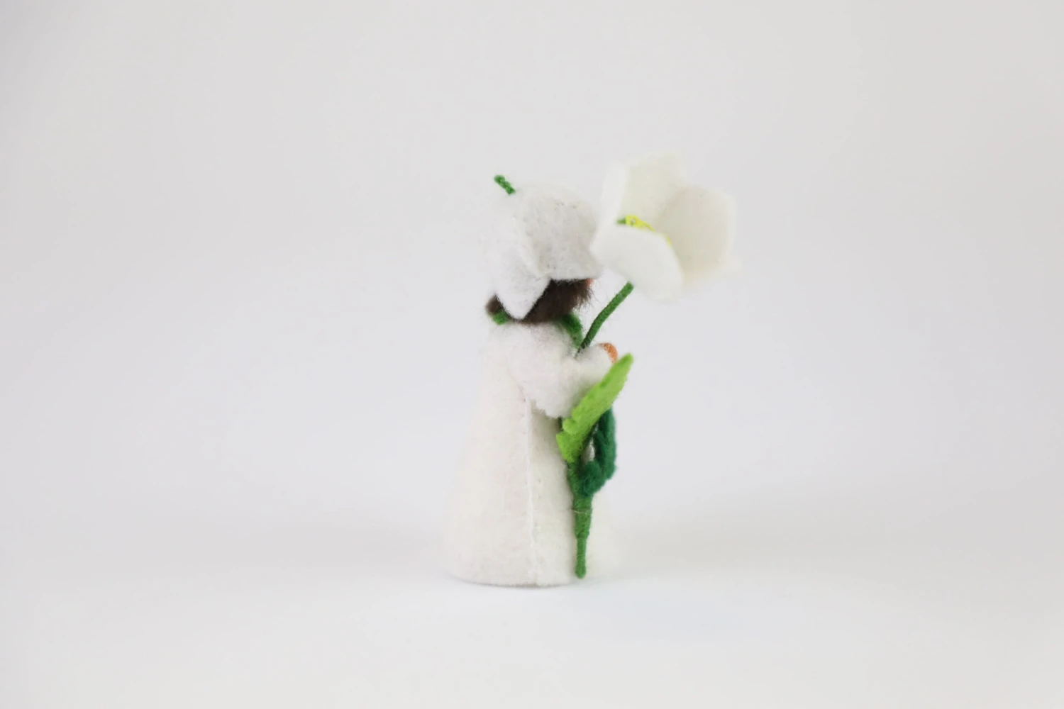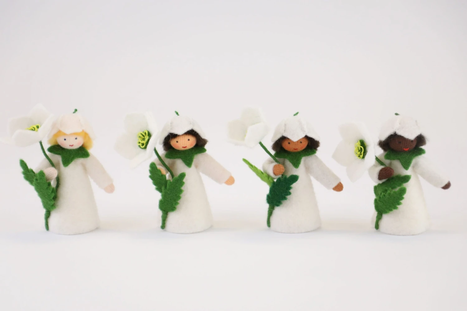 Waldorf style dolls handmade in Romania with wool felt and cotton. These lovely dolls have bendable arms and are perfect for the nature table or a little companion friend.