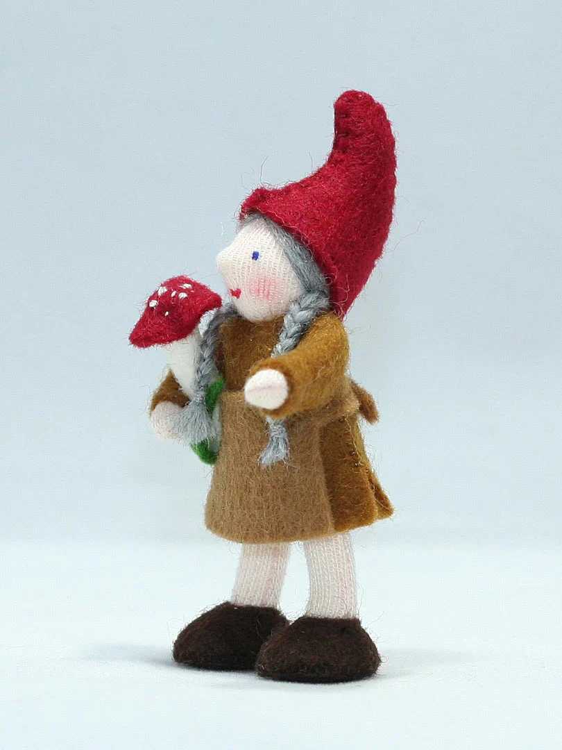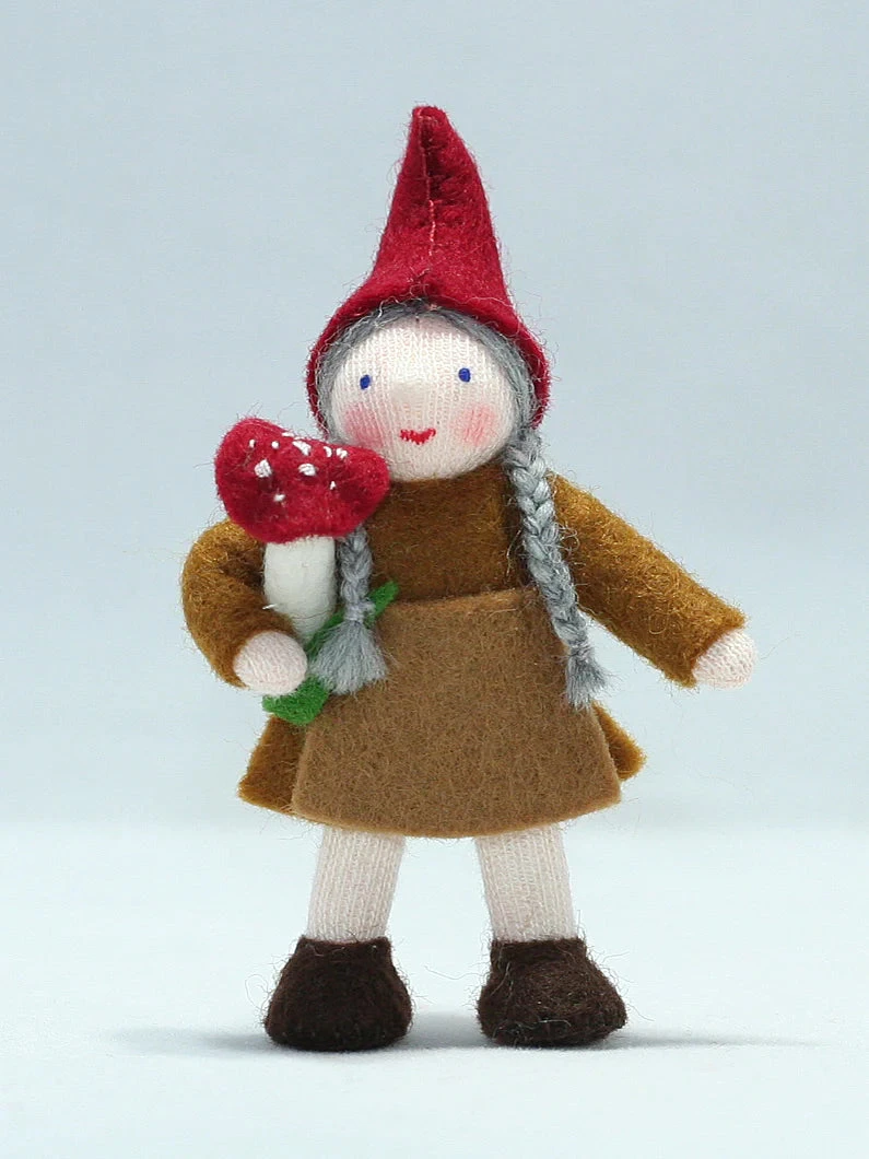 Waldorf style dolls handmade in Romania with wool felt and cotton. These lovely dolls have bendable arms and are perfect for the nature table or a little companion friend.