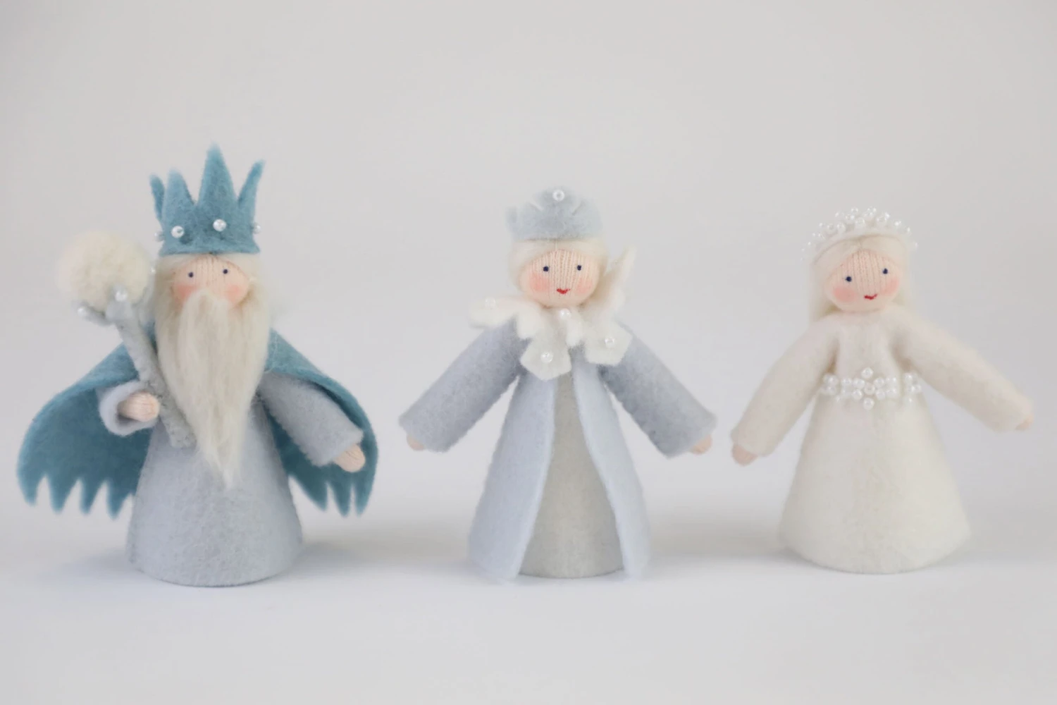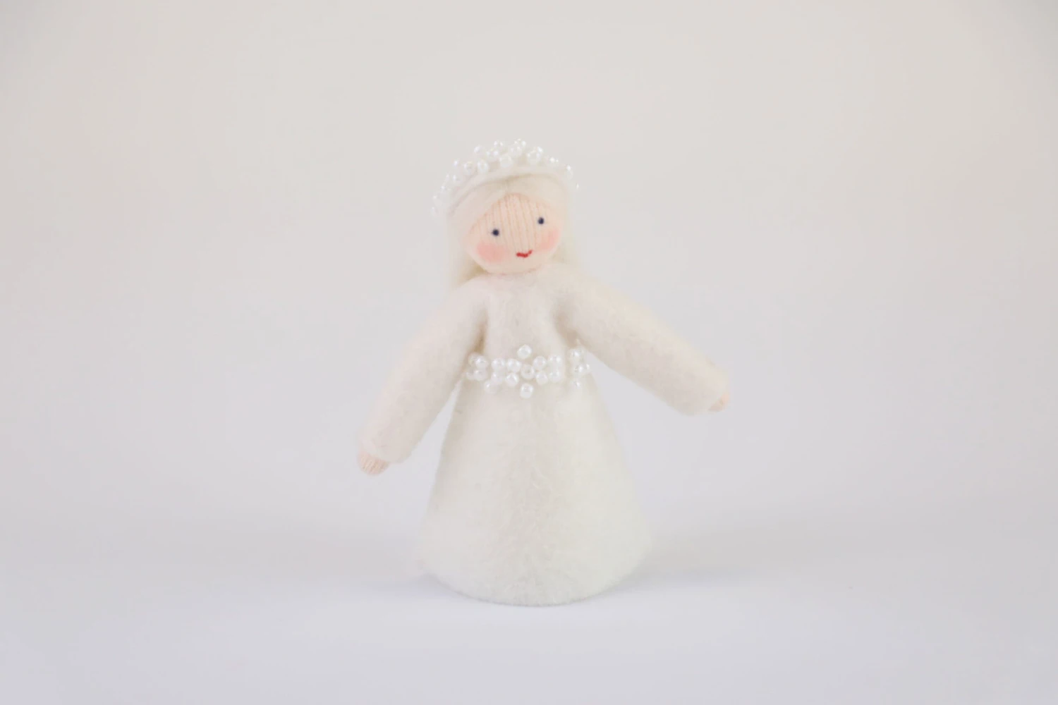 Waldorf style dolls handmade in Romania with wool felt and cotton. These lovely dolls have bendable arms and are perfect for the nature table or a little companion friend.