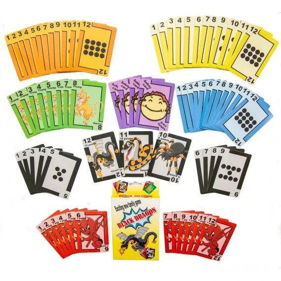 Adjust the deck for the number of players. Each player chooses 3 cards they DO NOT want and passes them face down to the right. Choose carefully… Player with Blue 1 card leads to the centre. All players must play the colour led unless they don’t have it. Trump cards will beat all other cards. Highest colour card or trump card wins. Set aside for scoring later. Safety cards can be played at ANY time even if you have the led colour, or lead with it and nominate a colour! Add up your points after each round.