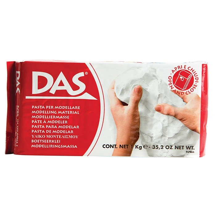 DAS Clay is an air hardening non-toxic modelling clay. DAS has a fine even texture that is easy to smooth. It can be used alone as a modelling clay or applied to various surfaces such as wood cardboard terracotta etc. Poster paint or varnish can be applied to complete the finished product.