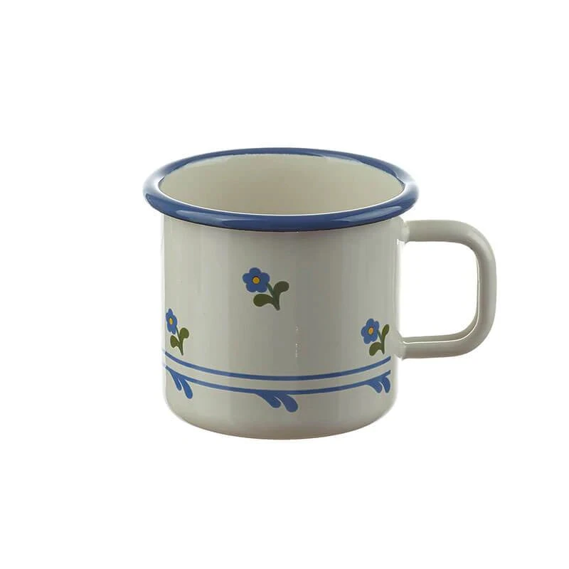 This cosy mug with with cream background and blue floral decoration is perfect for camping or just to make a beautiful everyday drink. Cuddle in with a hot cuppa!