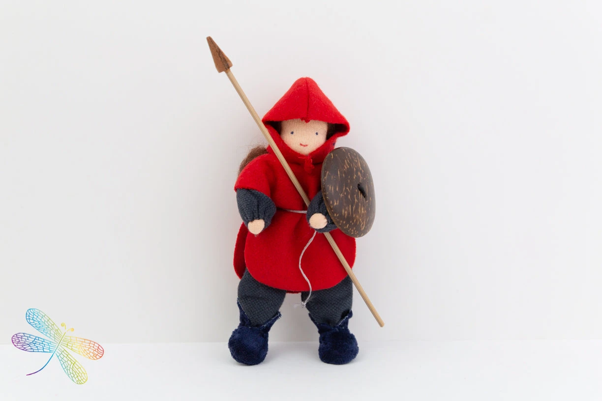 Lovingly handcrafted in Brazil by Evi, these Steiner inspired handmade mini knights are made from wool fleece, cotton, and velvet-finish velour. They are well equipped with mini bow and arrow, sword and shield.