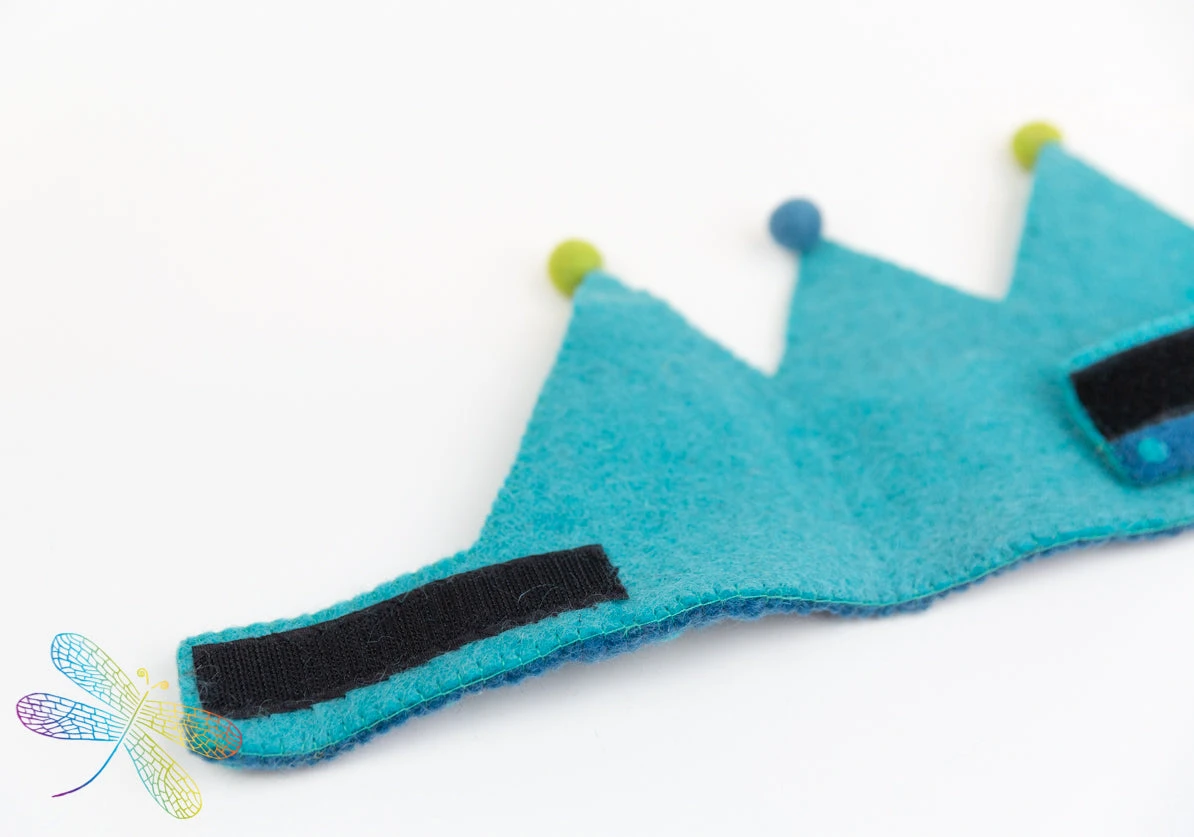 A beautifully stitched crown made for a special dress up or a birthday celebration. Comes with an adjustable velcro strap so will fit a 1 year old to and adult. Made with care by Pashom.