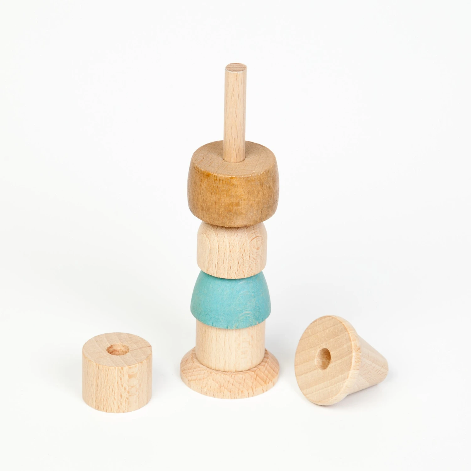 Beautifully crafted stacking toy. Children explore fitting the pieces together. Improving hand eye coordination and fine motor skills. This toy can be a symbol and decorative or a game of imagination allowing multiple actions and combinations.