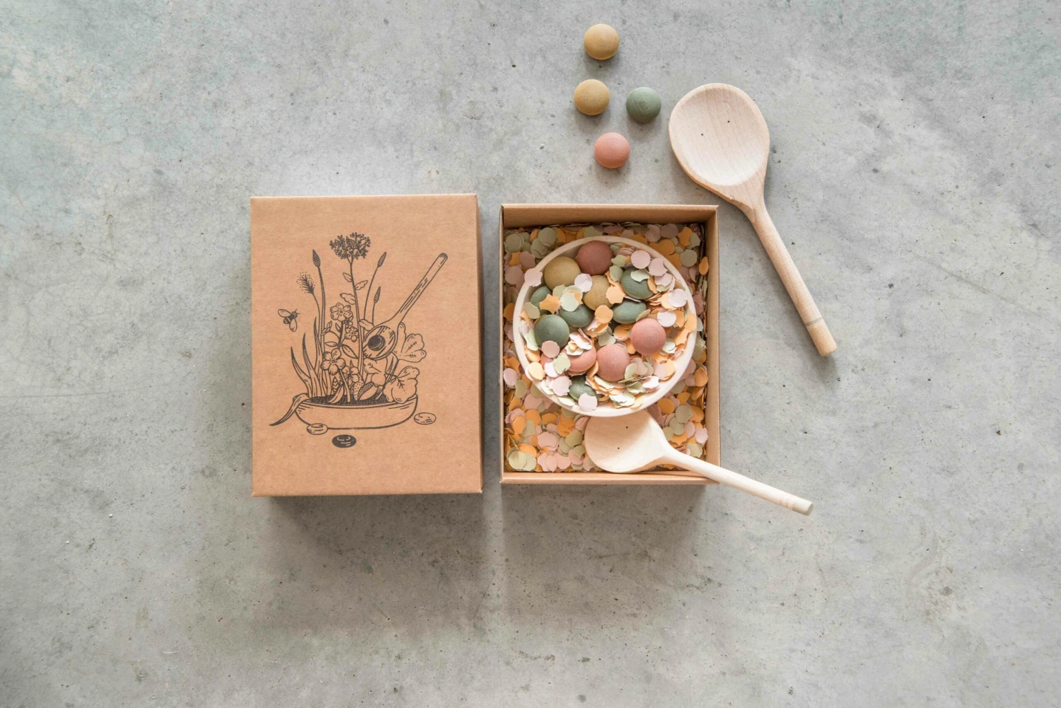 Grapat parts connect children to the natural world: they are made of sustainably sourced wood and feature the colours of the rainbow using water based non-toxic dyes.