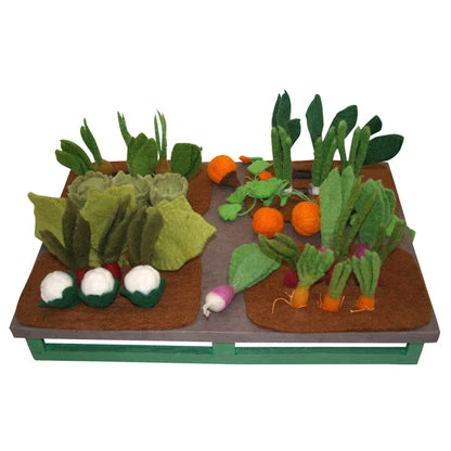 A great full vegetable garden for play, learning, storytelling and more. Comes with a lovely wooden planter box with holes for planting the abundant vegetables set. Vegetables include pumpkin, cauliflower, radish, carrots, turnips, cabbage and lettuce, beetroot.
