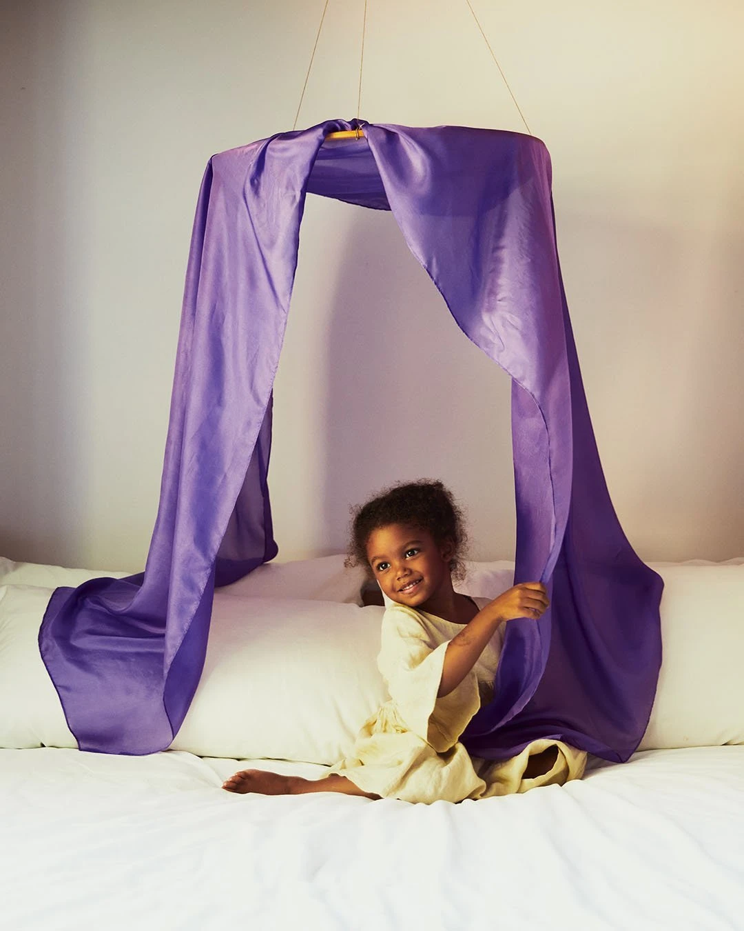 Giant Playsilks are the perfect toy to encourage open-ended play – your child will love incorporating them into dress-up, make-believe scenes, fort building, physical activities such as yoga, dancing, and sensory play – and so much more!