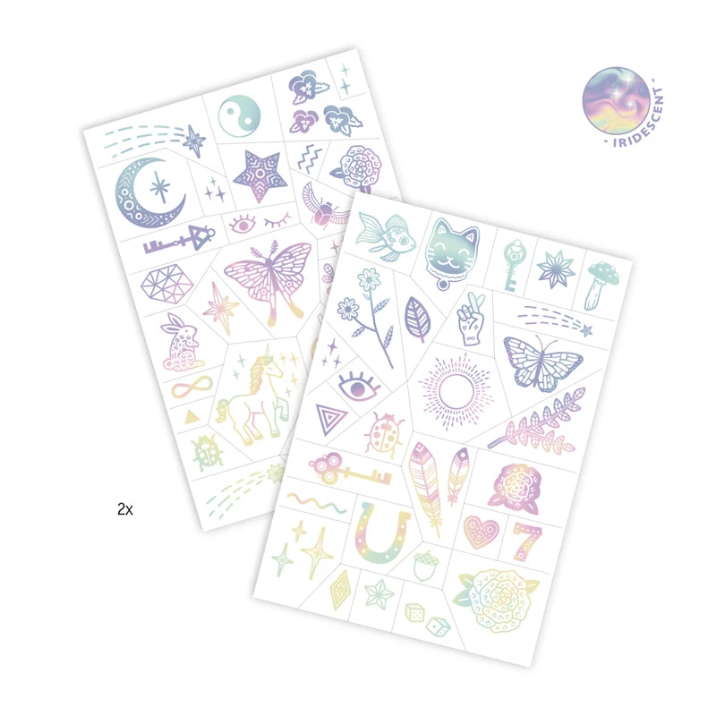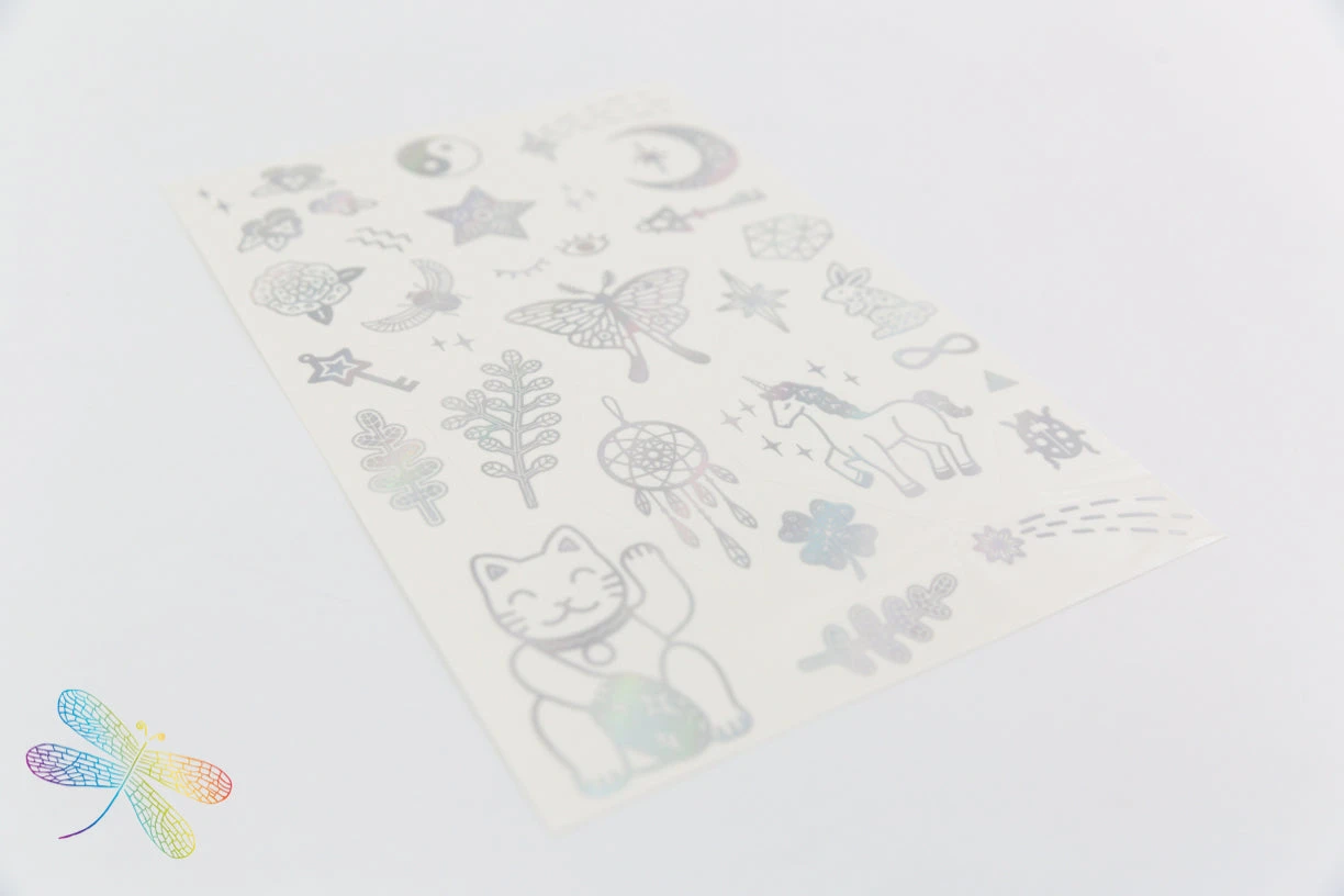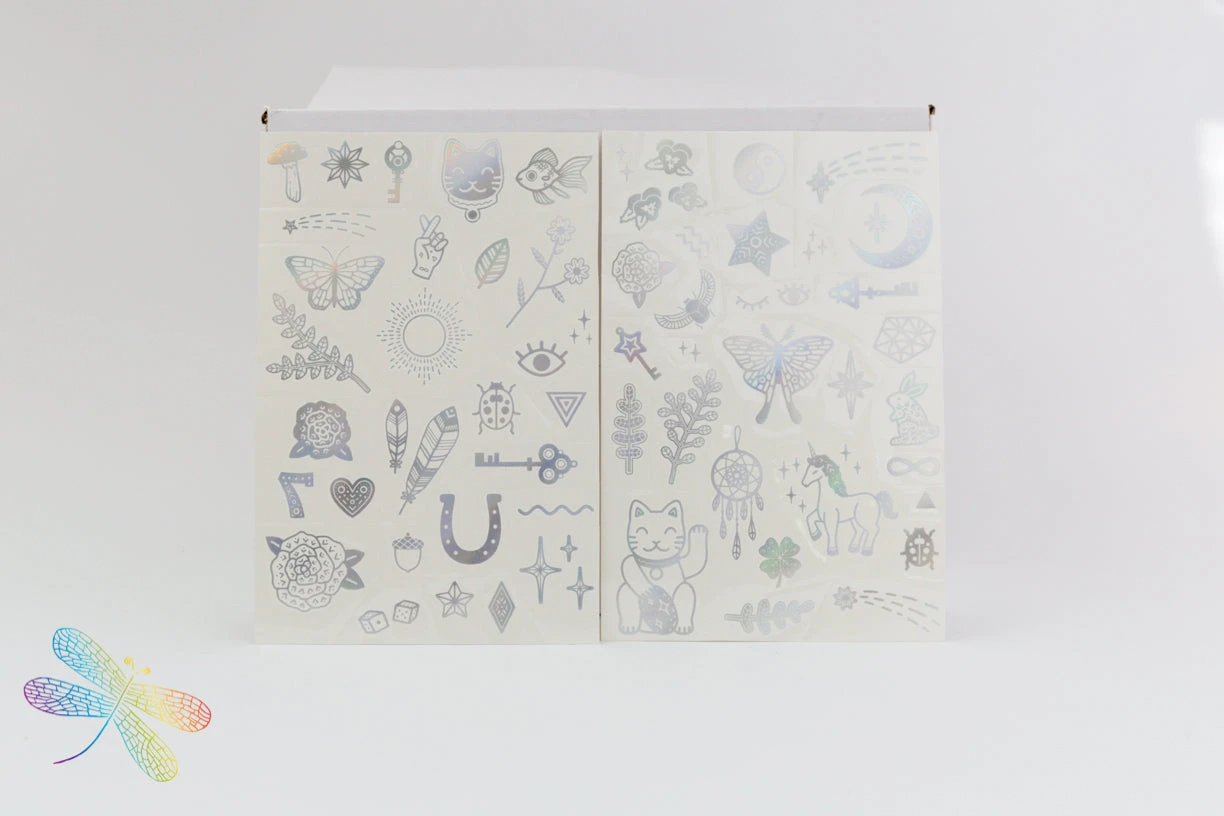 A collection of dermatologically tested tattoos withย a metallic finish.ย