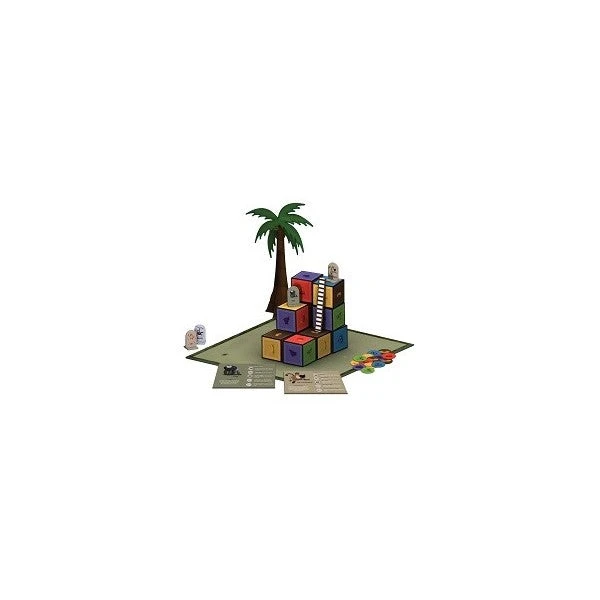 It’s night time at the zoo. All the visitors have come and gone, and the zookeepers have headed home. Amongst the packing crates scattered around their enclosure, the monkeys gather for their regular competition! Each Sunday night, the monkeys race to push the crates together to build a tall tower. Choose your monkey and by matching food tokens to the colours on the packing crates, climb to the top first. Watch out for the other monkeys who may try and scare you away or block your moves. Make the most of each monkey’s special abilities to help you climb higher. The first one to clamber high enough to leap into a nearby tree, spends a night on the town! The others stay behind to cover the escapee’s tracks and await the monkey’s return, planning to be the fastest one next time they compete. Plan your moves carefully and you’ll be the one creating mayhem!