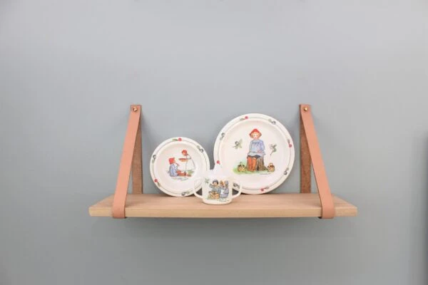Children’s tableware in three parts made of scratch-resistant melamine plastic. The set includes a