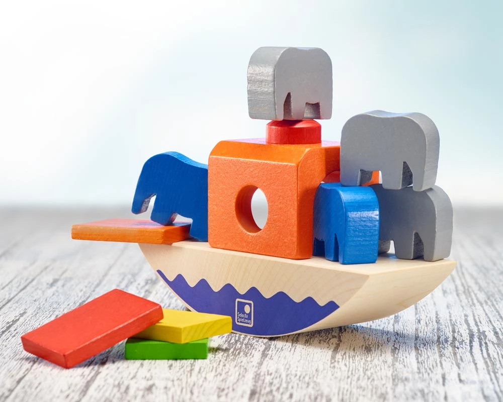 A rocking and rolling, wobbly affair! This game involves skillful distribution of the elephants and the colourful wooden boards.