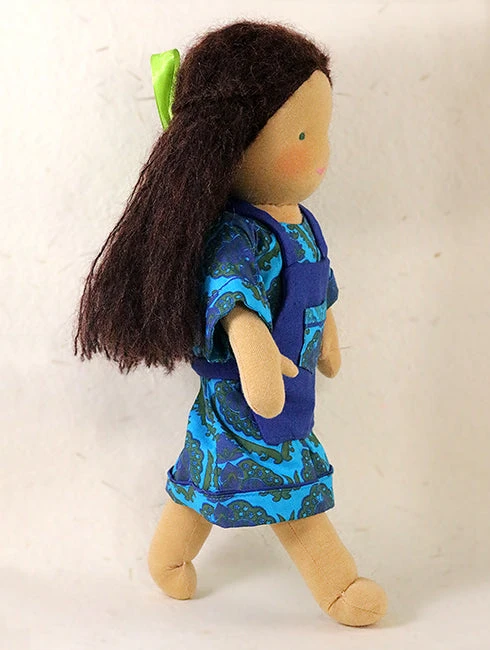 Each doll is individually handmade by one woman from beginning to end – starting with cutting, stitching and filling the doll – to finally sewing on the hair and face – giving each doll a unique personality of it’s own.